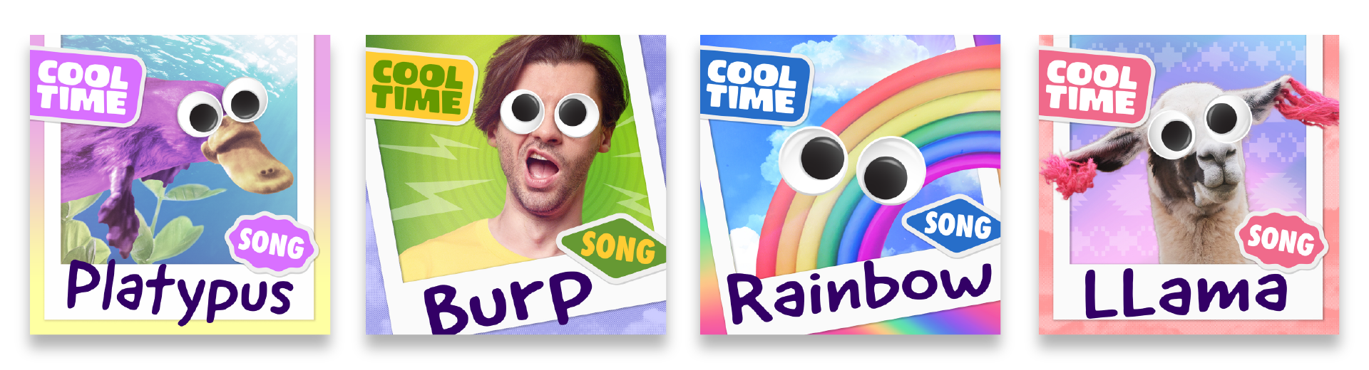 I created cover artwork for Cooltime singles, which each have a unique theme from the “Songs About Stuff” album.